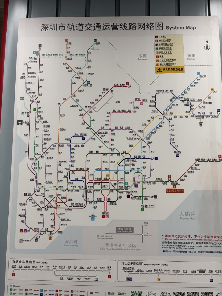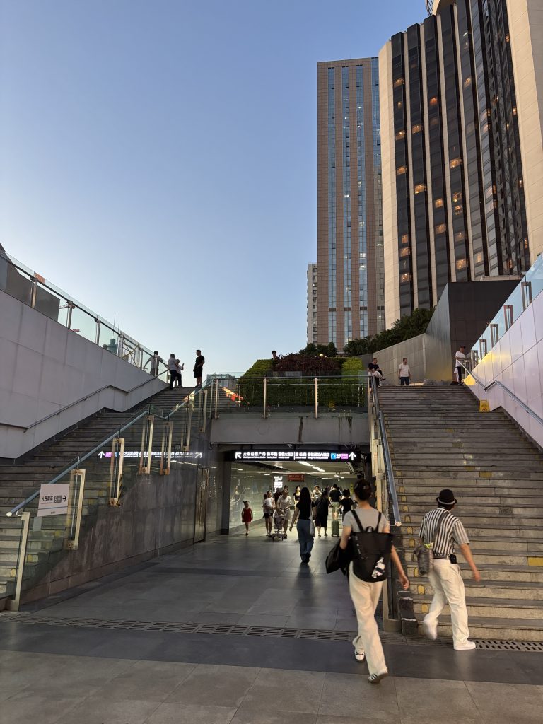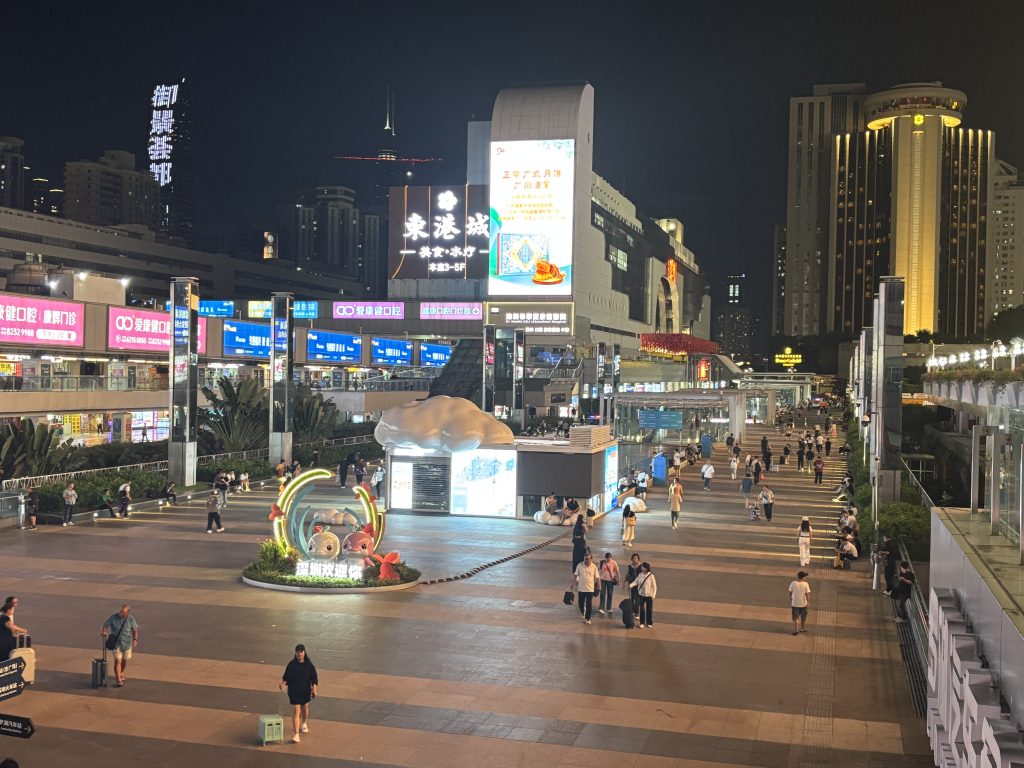 深圳駅 でかいです。セブンみたいなお店があるけど多分偽物。中国に入った途端google mapが機能しなくなります。地図アプリが全滅なので、現在地もホテルも場所がわからず。。本当に全然違うところを示す上に時間の経過とともに場所が移ります。駅近のホテルを予約しましたが迷いまくった挙句、DiDi(中国のウーバータクシー)で送ってもらいました。まじで迷子になります。なりました。