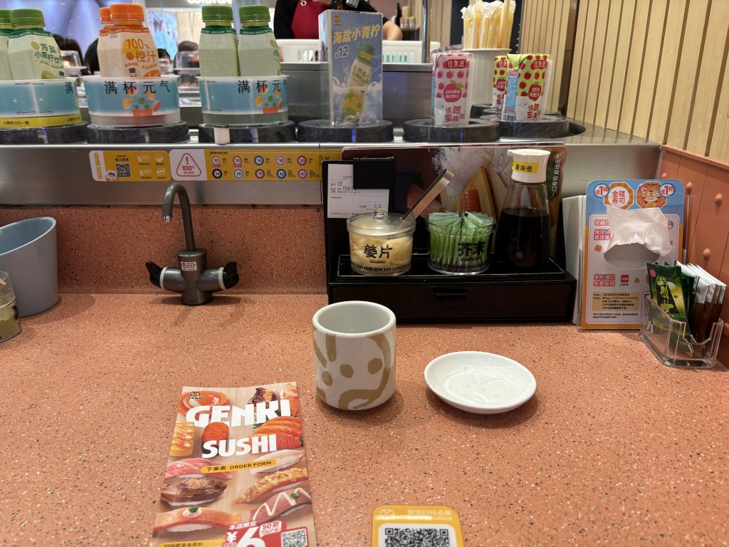 夕食は元気寿司 値段はまあまあですが あまりおいしくなかったです HAWEIの自動車が展示してました
