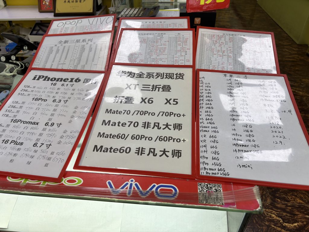 やはり花形は中古のスマホでしょう あるビルでは熱心に売買されていました こんな価格表がたくさんあって 熱心に交渉してます たのしー